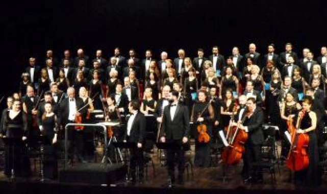 Antalya Devlet Senfoni Orkestrası'nın (ADSO) Atatürk Kültür Merkezi (AKM) Aspendos Salonu'ndaki konserinde Devlet Çok Sesli Korosu'nun 70 piyanist, soprano, alto, tenor, bas sanatçısı ile orkestranın da 44 keman, viyola, viyolonsel, kontrbas, klarnet, fagot, trompet, trombon, timpani sanatçısı sahnedeki yerlerini aldı.