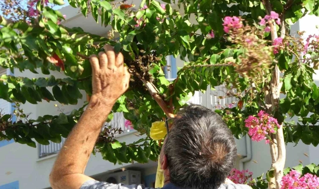 Manavgat ilçesi Aşağı Hisar Mahallesi 4588 Sokak üzerinde koloni halinde havada uçan bal arıları, refüj içindeki ağaca konarak oğul verdi. Arıcılıkla uğraşan bir vatandaş, ağaçtaki arıları kopardığı bir dalda topladıktan sonra çuvala koyarak kovana koymak üzere götürdü.