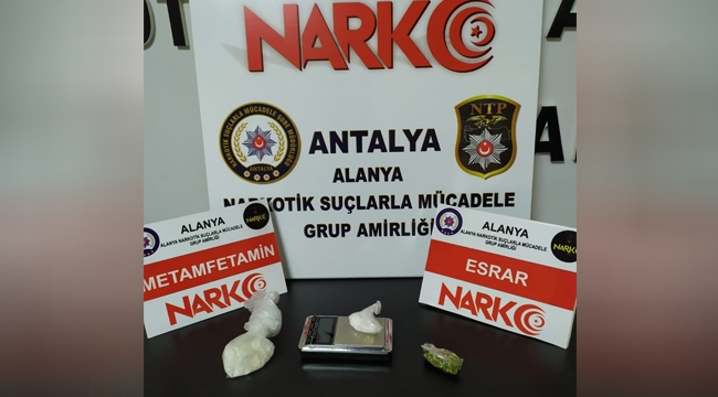 Antalya’nın Alanya ilçesinde polisin durdurduğu araçta bir miktar esrar ve metamfetamin ele geçirildi. Olayla ilgili 2 şüpheli gözaltına alındı