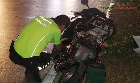 ANTALYA'da alkollü sürücü, elektrikli motosiklet ile seyir halinde olan 2 kişiye çarptı. Yaralanan motosiklettekiler hastaneye kaldırılırken, alkollü sürücü polis merkezine götürüldü.Kaza, dün saat 21.30 sıralarında Muratpaşa ilçesine bağlı Yeşildere Mahallesi Aşık Veysel Caddesi üzerinde meydana geldi. Cadde üzerinde 07 BCR 636 plakalı otomobiliyle seyir halinde olan Baran A., direksiyon hakimiyetini kaybederek, aynı cadde üzerinde elektrikli motosiklet ile seyir halinde olan sürücü Talat A. ve berasberindeki Barış K.'ya çarptı. Çarpışmanın etkisiyle motosikletten fırlayan Talat A. ve Barış K. yaralandı. Kazayı görenlerin ihbarıyla bölgeye sevk edilen sağlık ekipleri, yaralılara ilk müdahaleyi kaza yerinde yaptı. Talat A. ve Barış K. bölgedeki özel bir hastaneye sevk edildi. Trafik ekipleri ise otomobilin sürücüsü Barış A'ya alkol testi yaptı. Barış A.'nın 2,26 promil alkollü olduğu belirlendi. Ekipler, sürücüyü polis merkezine götürdü. Hurdaya dönen otomobil ise çekici yardımıyla sokak üzerinden çekildi.