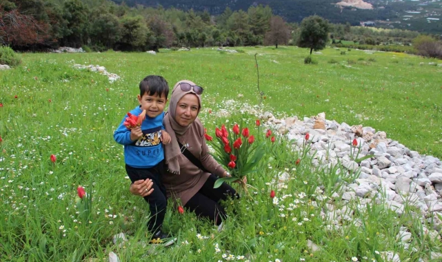 Baharın kendini iyiden iyiye hissettirdiği Antalya'nın Finike ilçesinde doğada rengarenk çiçekler açmaya başladı. Finike ilçesi Gülmez Dağı eteklerinde yaşayan çiftçi İrfan Karadeniz'in yaklaşık 35 dönümlük arazisinde açan Osmanlı laleleri, görsel şölen oluşturuyor. Görüntüsüyle ilgi odağı olan çiçeklerle vatandaşlar fotoğraf çektirmeyi ihmal etmiyor.