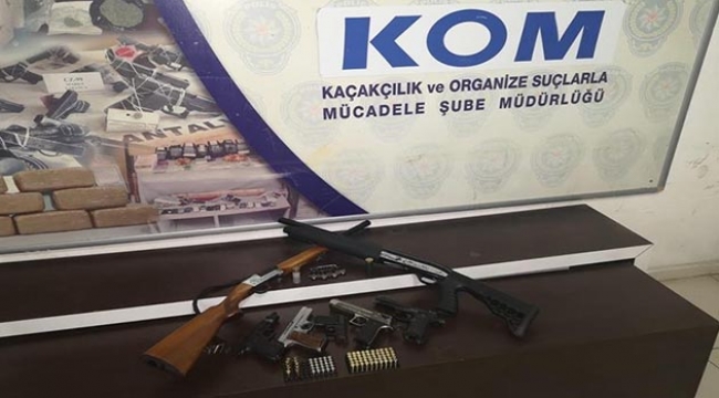 Alınan bilgiye göre, Antalya Cumhuriyet Başsavcılığı koordinesinde Kaçakçılık ve Organize Suçlarla Mücadele Şube Müdürlüğü tarafından il genelinde eş zamanlı çalışma yapıldı. Şüphelilere ait ikamet, işyeri ve araçlarda yapılan aramalarda 5 adet tabanca, 3 adet şarjör, 86 adet tabanca mermisi, 2 adet av tüfeği, 2 adet av tüfeği fişeği, 1 adet muşta ve dijital materyaller ele geçirildi. Olayla ilgili gözaltına alınan 3 şüphelinin sorgularının devam ettiği bildirildi.