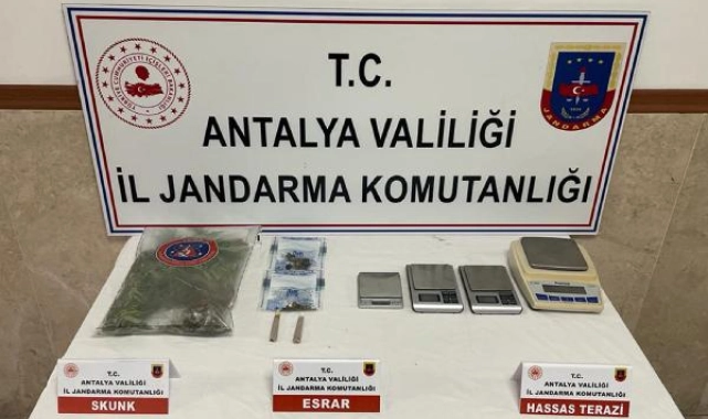 Antalya merkez ve ilçelerinde uyuşturucu madde satışı yapıldığı bilgisi üzerine İl Jandarma Komutanlığı tarafından araştırma başlatıldı. Antalya, Manavgat ve Serik cumhuriyet başsavcılıklarının talimatı doğrultusunda yapılan çalışmalar sonucunda bazı kişilerin uyuşturucu madde ticareti yaptığı tespit edildi. Eş zamanlı olarak düzenlenen operasyonlarda 21 şüpheli gözaltına alındı. Şüphelilerin ev, iş yeri ve araçlarında yapılan aramalarda 2 bin 205 sentetik uyuşturucu hap, 50 gram metamfetamin, 50 gram skunk, 350 gram esrar, 4 hassas terazi ile 10 uyuşturucu içme aparatı ele geçirildi.
