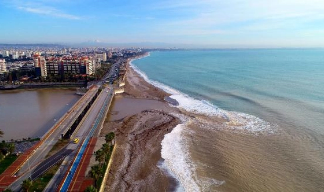 Turizm kerti Antalya'da salı akşamından beri etkili olan yağmur ve fırtınanın ardından güneş yüzünü gösterdi. Pırıl pırıl güneşli havaya uyanan Antalyalılar, soluğu sahilde aldı. Kimisi yürüyüş yaptı, kimisi denize girdi, kimisi de izledi. Boğaçay olarak bilinen Toros Dağları'ndan doğan akarsuyun denize döküldüğü alan ise kahverengiye döndü. Bu alan, dron ile havadan görüntülendi.