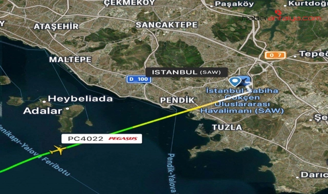ANTALYA-İstanbul Sabiha Gökçen Havalimanı seferini yapan Pegasus Havayolları’nın uçağına iniş için alçaldığı sırada kimliği belirsiz kişi veya kişiler tarafından lazer tutuldu. O anlar kule ile pilot arasındaki telsiz konuşmalarına yansıdı.