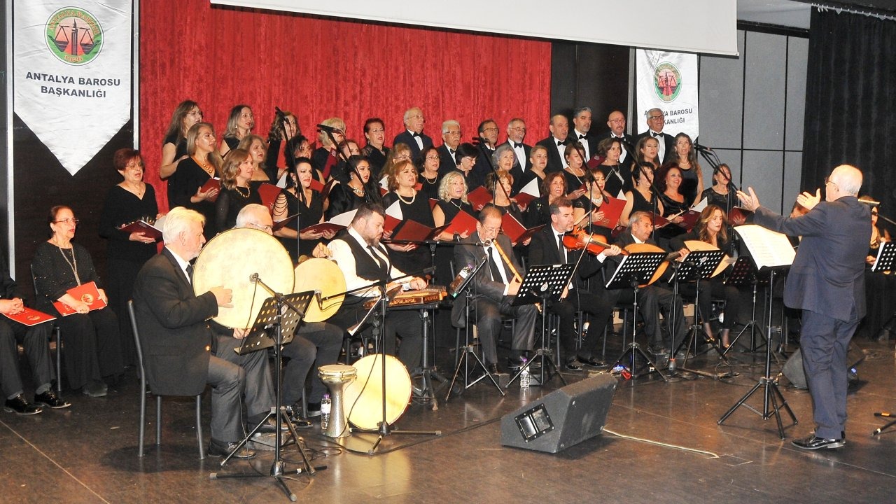 ANTALYA Barosu bünyesinde Cengizhan Gököz'ün yönetiminde çalışmalarını sürdüren Türk Sanat Müziği Korosu, şarkıseverleri 'Kışa Merhaba' konserinde buluşturd