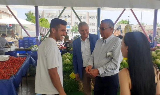 Pazar yerine alışveriş için gelen vatandaşlarla da sohbet etmeyi ihmal etmeyen Başkan Topaloğlu ve Başkan Yardımcısı Gül, esnafa hayırlı işler ve bol kazançlar temennilerinde bulundu.