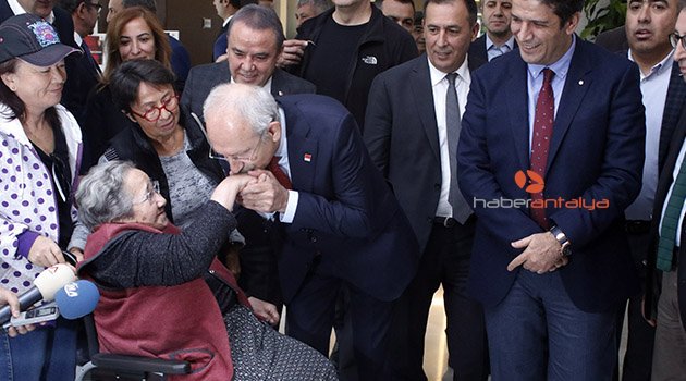 Muratpaşa Belediyesi'nin toplu açılış ve yeni projesinin temel atma törenine katılmak üzere Antalya’ya gelen CHP Genel Başkanı Kemal Kılıçdaroğlu, sabah saatlerinde ilk olarak konakladığı otelde basına kapalı olarak, turizmcilerle bir araya geldi. Toplantının ardından Erdal İnönü Parkında Türkiye Harp Malulleri, Gaziler, Şehit, Dul ve Yetimler Derneği Antalya Şubesi’ni ziyaret etmek için otelden çıkmaya hazırlanan CHP Genel Başkanı Kılıçdaroğlu, otel lobisine tekerlekli sandalyeyle gelen 80 yaşındaki Zehra Yiğit ile sohbet etti. Daha sonra otelde bir program için gelen öğrencilerle özçekim yapan Kılıçdaroğlu, Türkiye Harp Malulleri, Gaziler, Şehit, Dul ve Yetimler Derneği Antalya Şubesi’ne yürüyerek geçti. Erdal İnönü Parkı içerisinde düğün fotoğrafı çeken bir çiftle de karşılaşan Kemal Kılıçdaroğlu, genç çifte hayırlı olsun temennisinde bulundu. Türkiye Harp Malulleri, Gaziler, Şehit, Dul ve Yetimler Derneği Antalya Şubesi’ne geçen CHP Genel Başkanı Kılıçdaroğlu, 30 dakikalık toplantının ardından park içerisinde muhtarlarla bir araya geldi. Kılıçdaroğlu, daha sonra toplu açılış ve temel atma töreni için Antalya'nın Akdeniz'e uzanan en uç noktası Ziya Gökalp Kent Parkı'na geçecek.