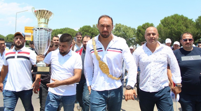 Edirne'den bugün Antalya'ya gelen Kırkpınar Başpehlivanı Ali Gürbüz, Döşemealtı Belediye Başkanı Turgay Genç, belediye meclis üyeleri, muhtarlar ve çok sayıda vatandaş tarafından karşılandı. Kendisini karşılayanları altın kemerini havaya kaldırarak selamlayan Gürbüz, daha sonra üstü açık otobüse binerek yol boyunca kendisine sevgi gösterisinde bulunanlara karşılık verdi.