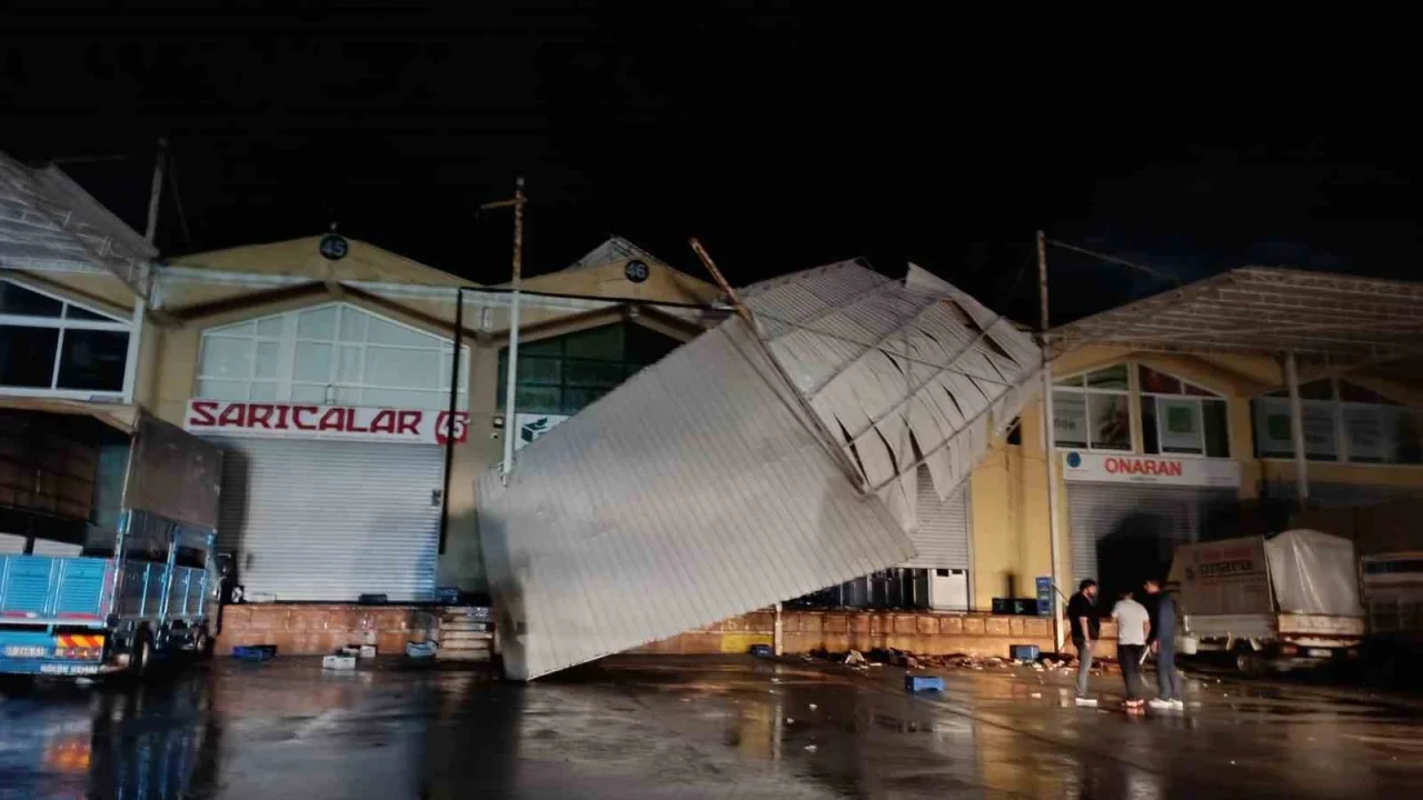 Antalya’nın Demre ilçesinde meydana gelen hortum nedeniyle toptancı halindeki bir işyerinin çatısı zarar gördü, Kaş ilçesinde de sağanak etkili oldu.