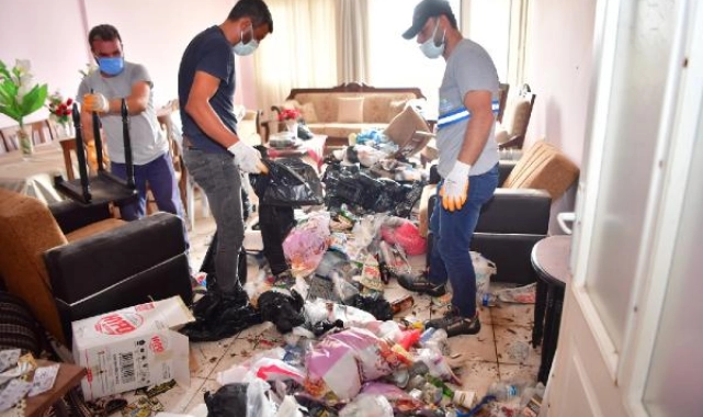 Toros Mahallesi'ndeki bir apartmandan kötü koku ve böcek şikayetinde bulunanlar Çukurova Belediyesi'ne başvurarak sorunun çözümü için yardım istedi. Temizlik İşleri Müdürlüğü ekipleri belirtilen adrese giderek savcılık izni ile içeri girdi. Çöplerden dolayı dairenin kapısının da zor açıldığı görülürken, içeri giren temizlik personeli şaşkınlık yaşadı. İlaçlama yapılarak çöpler poşetlerle kamyona yüklendi.