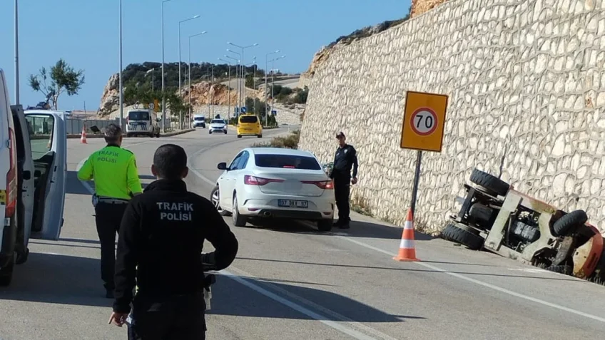 Olay, D-400 Kaş-Kalkan karayolunda meydana geldi. Edinilen bilgiye göre, Mustafa Yeşil (51) idaresindeki forklift yürüyüş yolu parke çalışması sırasında kamyondan taşlar indirildiği sırada geri gelirken refüje devrildi.
