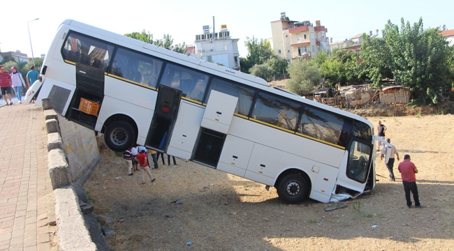 Antalya'da park halinde bulunan bir otobüs istinat duvarını aşarak aşağıya uçtu. Otobüsün Abdi İpekçi Caddesi'nde park halindeyken freni boşaldığı için istinat duvarından aşağıya uçtuğu öğrenildi.