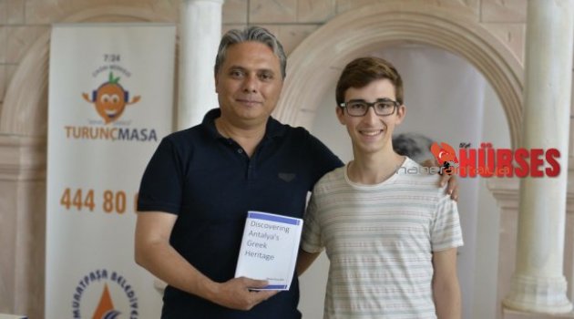 17 yaşındaki Antalyalı genç Kenan Cruz Çilli, hazırladığı, Antalya'nın çok kültürlü tarihine ve Rum mirasına ışık tutan kitapçığını Muratpaşa belediye başkani Ümit Uysal'a hediye etti.