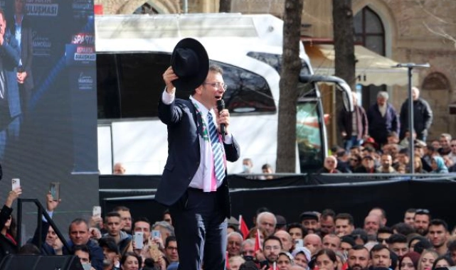 Milletin devletin sahibi olduğunu aktaran İmamoğlu, "Millet ne istiyor biliyor musunuz? Millet güler yüz istiyor. Millet döver gibi değil, sevecek ama gibi de değil gerçekten sevecek, gönülden sevecek, oyu için hiç değil, şu memleketin her insanına hizmet etmenin gururunu yaşayacak. Oyu için değil, oy versin vermesin sevecek. Partiler gelir geçer, esas olan devlet, esas olan millettir. Burada dünya güzeli bir kızımız yazmış. 'Hangi çılgın bana zincir vuracakmış şaşarım', işte söz hakkı. Demokrasinin temeli, sözünü söyleyecek, hakkını arayacak. Sözünden, fikrinden dolayı cezalandırmak yok. İşte biz memleketimizin bu güçlü demokrasi ile yönetilmesini ve taçlanmasını istiyoruz. Bu seçim o seçim" diye konuştu.