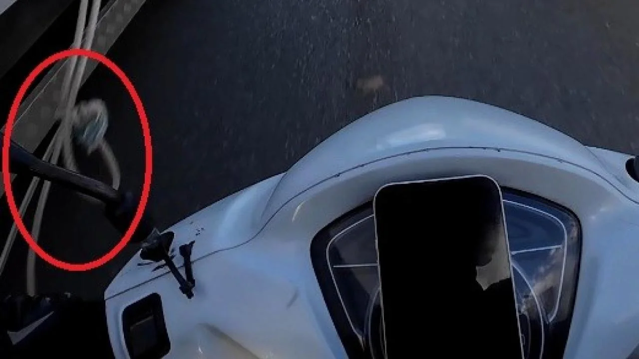 Dengesini kaybeden motosiklet sürücüsü yola savrularak metrelerce sürüklendi. Kask kamerasına yansıyan görüntülerde, sürücünün yere düştüğü sırada yanındaki kamyonetin hareketine devam ettiği ve arka tekerleklerin altında kalmaktan son anda kurtulduğu görüldü. Kazada yaralanan motosiklet sürücüsünün hayati tehlikesinin bulunmadığı öğrenildi.
