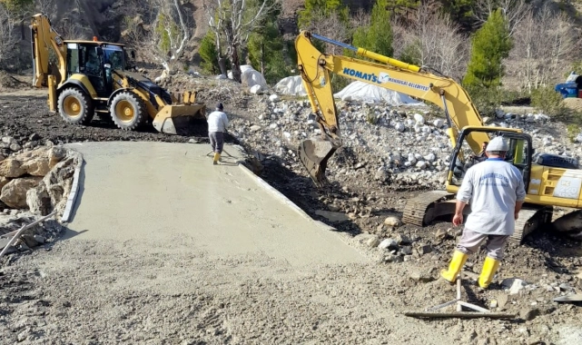 Manavgat Belediyesi Fen İşleri Müdürlüğü ekipleri, Manavgat'ın en uzak kırsal mahalleleri arasında yer alan Kırkkavak Mahallesi'ndeki dere yatağında menfez çalışması gerçekleştirdi. Belediye ekipleri, ilk olarak tarım arazilerine ulaşım yolu olarak kullanılan bölgede geçiş güzergahını güvenli hale getirmek amacıyla 100 metrelik taş duvar örerek beton dökümü işlemi gerçekleştirdi. Mahalle sakinlerinin ulaşımını kolaylaştırmak amacıyla köprü menfez inşa eden Manavgat Belediyesi, araba ve traktörlerin rahatça geçebileceği şekilde çalışmayı gerçekleştirdi.