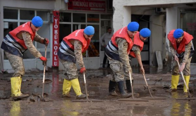 Kent genelinde ilgili kurumlara bağlı ekipler, iş makineleri ile balçık temizleyip, yolları yıkıyor. İş yeri sahipleri de dükkanlarındaki su ve çamuru temizleyerek, zarar gören ürünleri dışarı çıkarıyor. Selden etkilenenlere askerler de yardım etti. Farklı kentlerden gelen 700 jandarma, iş yeri sahipleriyle dükkanları temizlerken, ürünleri taşımasına yardımcı oldu. Jandarma ayrıca yollarda temizlik çalışması yapıp, selin etkilerini azaltmaya çalıştı. Sel bölgesine gelen mavi bereli komando birlikleri de çalışma yürütüyor.