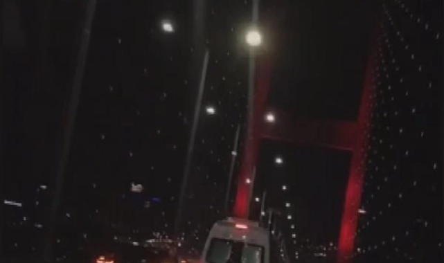 Olay, 15 Temmuz Şehitler Köprüsü'nde Avrupa yakasına geçiş istikametinde yaşandı. Köprüde ilerleyen otomobilin sürücüsü ile servis minibüsünün şoförü arasında kavga çıktı. O anları başka bir sürücü, cep telefonu kamerasıyla kaydetti. Görüntülerde, sağ şeritten en sol şeride geçen otomobil sürücüsünün yavaşlayıp önüne aldığı minibüse selektör yakarak yanaştığı görülüyor. Ardından otomobilin yolcu kısmındaki kişi camdan sarkarak minibüs şoförüne vurmaya çalışıyor. Bir süre sonra minibüs sürücüsü hızını yavaşlatıp en sağ şeride geçiyor.