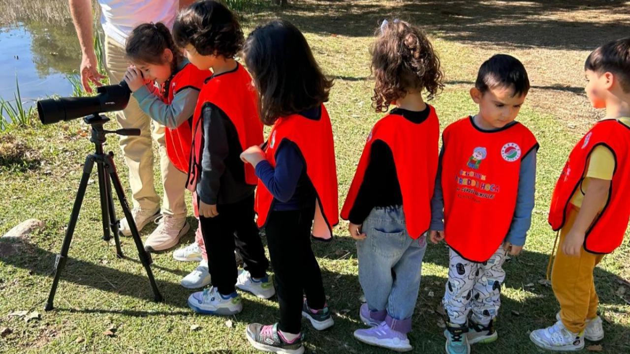 Kepez Belediyesi Nasreddin Hoca Kreş ve Gündüz Bakımevleri’nde öğrenim gören 5 yaş grubu çocuklar, "Doğa Okuryazarlığı Eğitimi" kapsamında düzenlenen doğa gezisinde dürbün ve teleskoplarla kuş gözlemi yaptı. Minikler, bir doğa bilimcinin merakıyla çevrelerini keşfederken, doğanın her bir canlısını isim isim öğrenmenin heyecanını yaşadı.