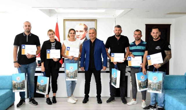 Antalya Muratpaşa Belediye Başkanı Ümit Uysal, belediyenin Zabıta Müdürlüğünce verilen 'Zabıtanın görev ve yetkileri' eğitimini başarıyla tamamlayan Girne Belediyesi'nin çalışanlarına katılım belgelerini takdim etti