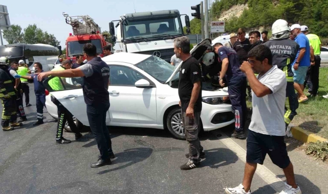 Kaza, Antalya-Manavgat D-400 Karayolu Çolaklı Jandarma kamp kavşağında meydana geldi. Manavgat istikametine seyir halindeki Mevlüt Y. idaresindeki 07 JV 875 plakalı beton mikseri, Tilkiler yönünden kavşağa çıkan Erkan Ekinci yönetimindeki 34 GKL 329 plakalı otomobil ile çarpıştı. Kazayı görenler durumu 112 Acil Çağrı Merkezi'ne bildirdi. Otomobilin hurdaya döndüğü kazada sıkışan sürücüyü Antalya Büyükşehir Belediyesi İtfaiyesi Manavgat birimine bağlı kurtarma ekibi çıkardı. Kazada yaralanan otomobil sürücüsü Erkan Ekinci ve 3 çocuğu sağlık ekiplerinin olay yerindeki müdahalesinin ardından ambulansla hastaneye kaldırıldı.