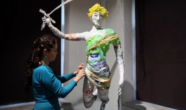 ANTALYA'da yaşayan Rus asıllı geri dönüşüm sanatçısı Güzel Amirova (46), çöp poşetinden plastik şişeye, gazoz kapağından plastik klipslere kadar birçok farklı materyali kullanarak yaptığı heykellerle çevreye ve ekosisteme dikkat çekmeye çalışıyor. Amirova'nın 'Perseus' adlı son çalışması, denizlerin plastik atıklarla kirletilmesini konu alıyor