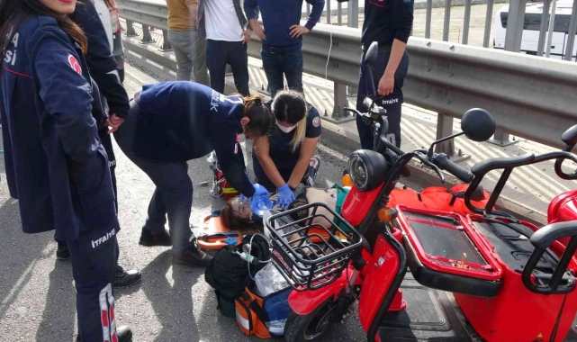 Antalya'nın Manavgat ilçesinde hafif ticari aracın çarptığı elektrikli bisiklette bulunan 2 İrlandalı turist ağır yaralandı. Bisikletle birlikte yaklaşık 50 metre sürüklenen ve kalbi duran kadın turist, 112 ambulansında görevli acil tıp teknisyenlerinin (ATT) yaptığı kalp masajıyla hayata tutundu. Bilinci kapalı olarak özel hastaneye kaldırılan ve ameliyata alınan kadının durumunun kritik olduğu bildirildi.