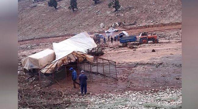 Öte yandan, sel nedeni ile oluşan toprak yığınının ise bir traktörü tekerlerinin yarısına kadar yuttuğu görüldü. Geçmen Mahallesi Muhtarı Ramazan Çetin, “Aniden bastıran yoğun yağmurun sebep olduğu sel nedeniyle çobanlık yapan Süleyman Karapınar’a ait 10 küçükbaş hayvan telef oldu. Allah korudu. Çok yağmur yağdı. Su bir anda geldi” dedi.