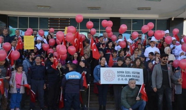 ANTALYA'nın Serik ilçesinde 2 Nisan Dünya Otizm Farkındalık Günü etkinlikleri kapsamında düzenlenen programda kırmızı balonlar gökyüzüne salındı
