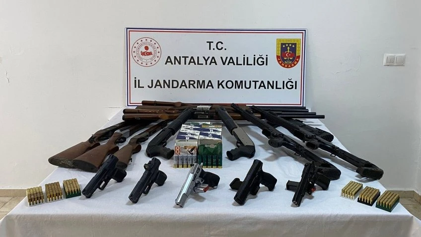 ANTALYA'nın Serik ilçesinde jandarmanın operasyonunda çok sayıda ruhsatsız silah ele geçirildi.