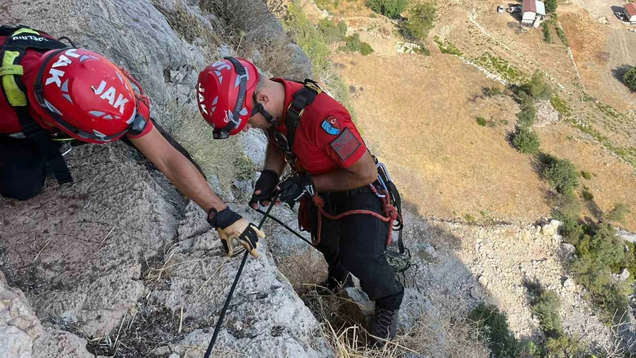 Antalya’nın Serik ilçesi Gökçepınar Mahallesi’nde, sahiplerinin otlatmaya çıkardığı keçilerden biri, 3 gün önce sürüden ayrıldı. 80 metrelik uçurumun kenarında mahsur kalan ve ailenin tüm çabalarına rağmen kurtarılamayan keçi için durum yetkililere bildirildi. Bölgeye sevk edilen AFAD ve Jandarma Arama Kurtarma (JAK) ekipleri, zorlu arazi şartlarında halat sistemi kurarak keçiye ulaştı. Serik İlçe Jandarma Komutanlığı ekiplerinin de destek verdiği çalışmayla keçi güvenli bir şekilde kurtarıldı. Keçisine kavuşan aile büyük sevinç yaşarken, kurtarma çalışmalarına katılan ekiplere teşekkür etti.