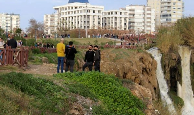Muratpaşa ilçesindeki Düden Şelalesi'nin denizle buluştuğu nokta, her yıl binlerce misafiri konuk ediyor. Manzaraya hayran kalan ziyaretçiler şelale eşliğinde fotoğraf çekiyor. Bazı ziyaretçiler ise yaklaşık 1 metrelik güvenlik çitinin üzerinden atlayarak 'Korkuluklara yaklaşmak tehlikeli ve yasaktır' uyarı tabelasına aldırmadan fotoğraf çekiyor. 40 metre yüksekliğindeki falezlerin kenarına kadar gelip, selfie ve fotoğraf çeken ziyaretçiler, tehlikeye aldırmıyor. Ayrıca bölgede çok sayıda kayalık olması nedeniyle çitleri aşan birçok kişi, falezlerden denizin kıyısındaki kayalıklara inip balık tutuyor.