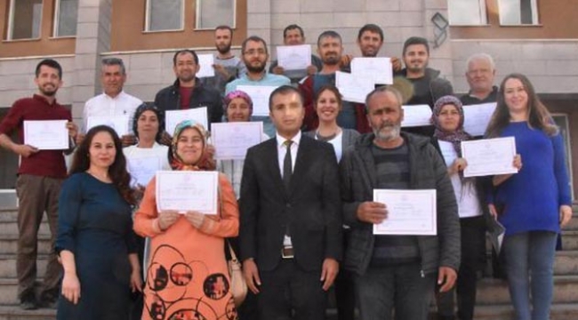 Demre'de Tarım ve Orman Müdürlüğü tarafından düzenlenen Bitki Zararlılarıyla Mücadele kursunu bitiren üreticilere belgelerinin verildiği tören Kaymakamlık'ta yapıldı. Belge dağıtımına İlçe Tarım ve Orman Müdürü Mustafa Işık, kursu veren ziraat mühendisleri Arzu Demirel ve Burcu Çarban ile üreticiler katıldı. İlçe Tarım ve Orman Müdürü Mustafa Işık, "Üreticilerimizin daha bilinçli üretim yapmanız, daha kaliteli ürün üretmeniz, daha iyi verim almanız için bu kursu düzenledik. 72 saat süren kursumuza aksatmadan devam ettiniz. Burada öğrendiklerimiz bitki zararlıları, solarizasyon, bitki hastalıkları, hastalıklarla mücadele, ilaçlama, biyolojik mücadele konularını siz de seranızda, bahçenizde uygulayacaksınız. Bu uygulama sonunda önce kendiniz, çocuklarınız, sonra da ürününüzü sattığınız tüketiciler sağlıklı ürün tüketecek. Şuna kesinlikle uyalım. Önce biyolojik ve entegre mücadele yöntemlerini uygulayalım. Bunu kendi sağlığınız, toplumun sağlığı için uygulayalım. Kimyasal mücadeleyi en son düşünün. Bunu da bir uzman gözetiminde yapın. Bu kursumuza kadın üreticilerimizin katılması ayrıca çok önemli. Bizi sürekli arayın. Gelelim birlikte uygulama yapalım. Ben size iyi üreticiler diyorum" dedi. Ardından kursu başarıyla bitiren 10'u kadın 35 üreticiye belgeleri verildi.