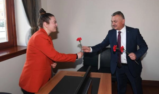 Valilikteki tüm birimleri tek tek ziyaret eden Vali Ersin Yazıcı, bürolarda görev yapan kadın personelin 'Dünya Kadınlar Günü'nü kutlayarak sohbet etti. Kadın personele karanfil takdim eden Vali Yazıcı, "Bir toplumun kadına verdiği değer, karakterine ışık tutar. Türk kadını, toplumumuzun yapısını güçlendirip şekillendirerek, daima özverinin ve sevginin kaynağı olmuştur. Gelenek göreneklerimizin, tarihimizin, sosyal hayatımızın temel dinamiği kadındır. Bugünün Türkiye'sinde kadınlarımız; eğitimden sağlığa, yasama, yürütme ve yargıdan iş dünyasına kadar her alanda üstlendiği sorumlulukla Türk Milletinin geleceğe güvenle bakmasının teminatıdır. 8 Mart Dünya Kadınlar Günü vesilesiyle her anımızı aydınlatan bizlere güç ve güzellik veren tüm kadınlarımızın gününü kutluyorum. Sizlerin ellerinizin değdiği her şeyi güzelleştirdiğinizi biliyorum. Bunu yoğun çalışmalarımız içinde bile fark ediyorum. Emekleriniz için çok teşekkür ederim. Hepinize sağlık, başarı ve mutluluk dolu günler dilerim" dedi.