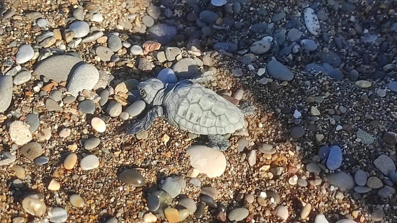 Yavru kaplumbağa yuvadan çıkıp denize ulaştı