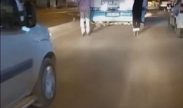 Antalya'nın Muratpaşa ilçesinde iki patenli gencin halk otobüsünün arkasına takılarak yaptığı tehlikeli yolculuk, motosiklet sürücüsünün cep telefonu kameralarına yansıdı. Geçtiğimiz gün akşam saatlerinde çekilen görüntüde, otobüs durunca yollarına devam etmeyen gençler, aracın hareket etmesiyle birlikte tekrar tutunup uzun süre yolculuk yaptığı görüldü. Tehlikeye aldırış etmeyen gençler, zaman zaman birbirleriyle de sohbet etti.