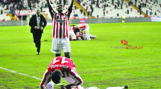 Spor Toto Süper Lig’in 15. Haftası’nda kendi evinde Mersin İdmanyurdu’nu ağırlayan Antalyaspor, 76 dakikasını 10 kişi oynadığı ve ilk yarısını 2-0 geride kapattığı maçtan 3-2 galibiyetle ayrılmayı başardı. Teknik Direktör Yusuf Şimşek’in görevinden ayrılmasıyla Mersin İdmanyurdu maçına Alt yapı Koordinatöre Mehmet Uğurlu ve takımın kaptanı Samuel Eto’o’nun hazırladığı kırmızı beyazlı ekipte, Antalyaspor’a galibiyeti getiren golleri Mbilla, Eto’o ve Lokman attı.